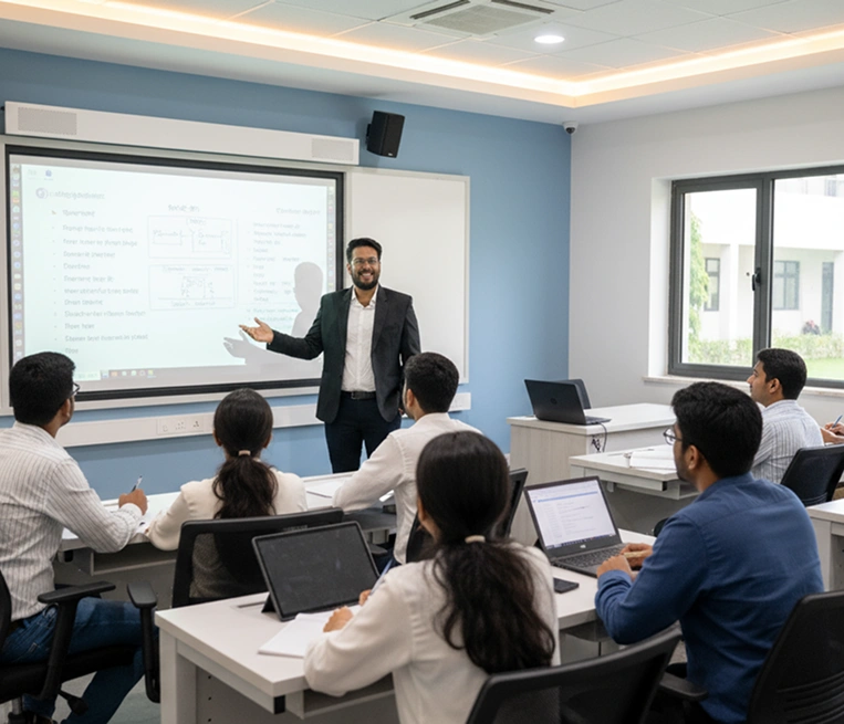 Small-cohort model (12-15 students) with 1-on-1 mentorship & structured doubt sessions.